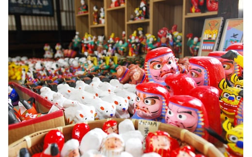 郡山市は、全国的に有名な玩具の故郷で、「デコ」とは人形のことをいいます。江戸期(元禄年間)から約300年にわたり、和紙を使った張子(はりこ)人形や縁起物の三春駒が作られてきました。その工人の集落はデコ屋敷と呼ばれ、今でも4軒の家々が伝統を守り伝えています。