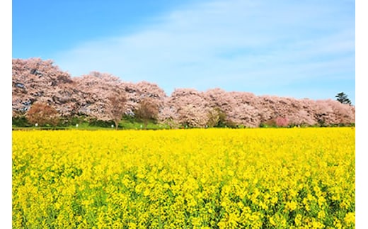 埼玉県幸手市(さってし)は、埼玉県の北東部に位置し、権現堂桜堤は、全国有数の桜の名所。まさに絶景!幸手のシンボルです。権現堂堤に約1キロにわたり植えられた約1000本のソメイヨシノの桜並木で堤の上は桜のトンネル、そして周辺に広がる菜の花畑。心温まる春の景色を楽しむことができます。