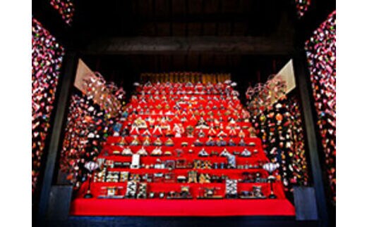 雛のつるし飾りは江戸時代から続く東伊豆の伝統です。娘の健康と幸せを祈って、お母さんやおばあちゃん、近所の人たちが着物を持ち寄り、様々なモチーフの小さな人形を作り、紐につるして飾ったのがその起源といわれています。雛のつるし飾り祭りでは、ひな人形とつるし飾りが素盞鳴神社の本殿までの階段118段に飾られる光景は圧巻の一言です。