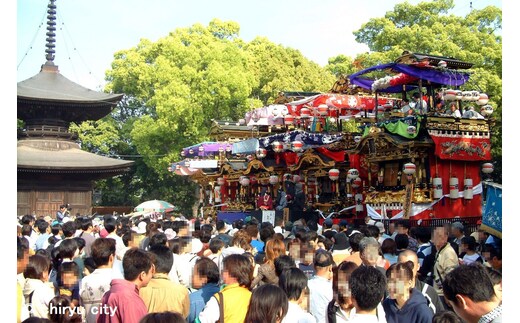 本祭(ほんまつり)は、5つの町から高さ7m、重さ5tの5台の山車が繰り出され、神舞(かんまい)と呼ばれる囃子にあわせ、家々の軒を圧するように巡行するさまは壮麗そのもの。また、山車の台上で奉納上演される人形浄瑠璃芝居の「山車文楽」と「からくり」は、ともに江戸時代から伝承されている情趣豊かな郷土芸能の粋です。なお、文楽を山車の上で上演するのは知立だけであり、ともにユネスコ無形文化遺産、国指定重要無形民俗文化財に指定されています。