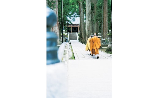 高野山の信仰の中心であり、弘法大師さまが御入定されている聖地。正式には一の橋から参拝します。一の橋から御廟まで約2キロメートルの道のりには、おおよそ20万基を超える諸大名の墓石や、祈念碑、慰霊碑の数々が樹齢千年に及ぶ杉木立の中に立ち並んでいます。