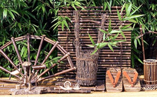 日高が育んだ独自の黒竹文化。黒竹は、淡竹(はちく)の一種であり、中国原産で青竹と比較して幹が細く、外皮が黒いのが特徴です。昔から釣り竿や家具の装飾に使われるなど、私たちの生活に密着した日用品として発展してきました。熊野古道の史跡が数多く現存する日高町の原谷地区は、明治初期から黒竹の植林が始まり、今では全国一の黒竹の生産地を誇ります。最近では、日高特産の素材を活かした新しい文化として、花立、壁掛け、置物などの雑貨に、工芸品づくりの体験も行われています。