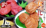 訳あり ご家庭用 紀州南高梅 大粒 食べ比べセット 1㎏ (はちみつ500g・しそ漬500g) 塩分約8% 無選別 / 訳あり 梅 梅干 梅干し うめ ウメ ハチミツ シソ 小分け すさみ町 within2025【khs122】15,000円
