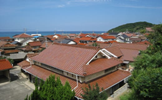 「来待(きまち)色」とも呼ばれる石州瓦は、日本三大瓦の一つに数えられています。江戸時代以降、焼き物づくりが盛んな工業の生産地として、さらに江の川の舟運や日本海ルートで運ばれる諸物資が集積する商港として繫栄した江津市は、市内に登り窯や石州瓦特有の赤瓦の集落があり、日本海と赤瓦のコントラストが印象的です。