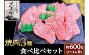 焼肉3種食べ比べセット約600g(3~4人前)【いわもと黒毛和牛】22,000円 -