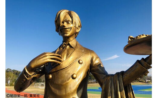 熊本県は震災以降、大人気漫画「ONE PIECE」とコラボ企画を行ってきました。熊本県庁前に設置された「ルフィ」を皮切りに各地に銅像の設置が行われています。給食センターが被災した益城町には温かい料理を振る舞うため、コックの「サンジ」がやってきてくれました。益城町総合運動公園内に設置されています。