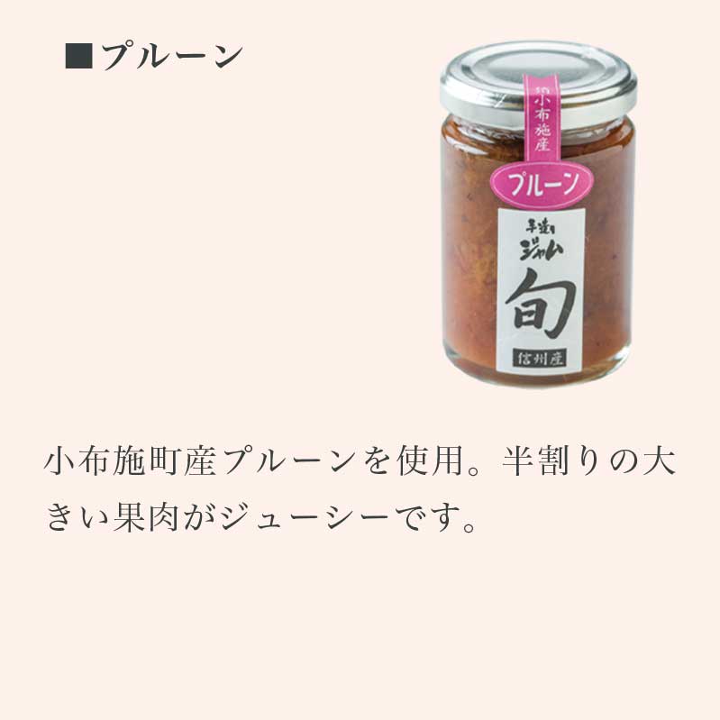 ■小布施町産プルーンを使用。半割りの大きい果肉がジューシーです。