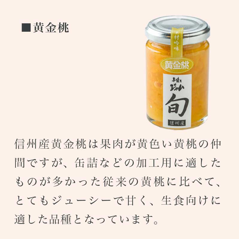 ・プルーンジャム140g×1本 ・白桃ジャム140g×1本 ・黄金桃ジャム140g×1本 ・ブルーベリージャム140g×1本