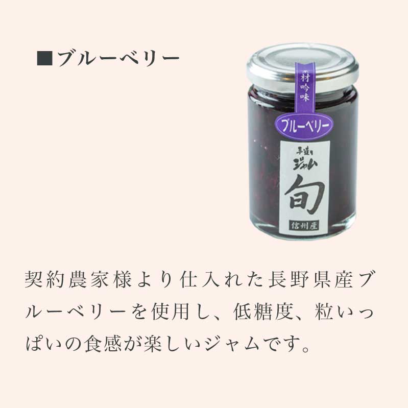 県の北部に位置する北信地域や小布施町で栽培される、四季折々の果物を瓶の中に閉じ込めてジャムにしました。