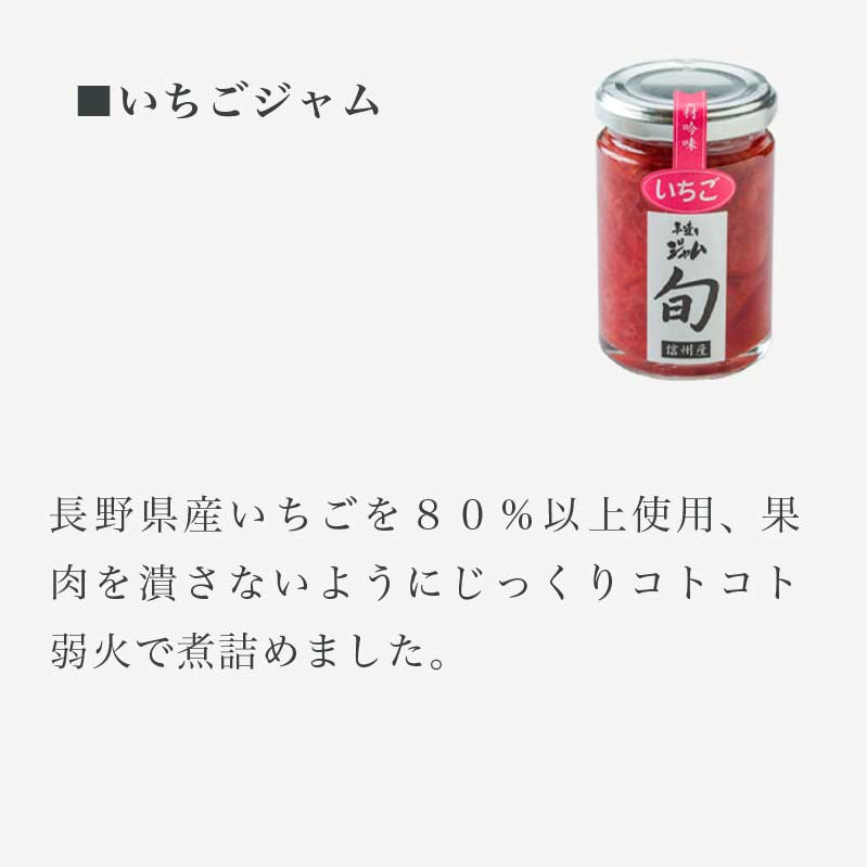 県の北部に位置する北信地域や小布施町で栽培される、四季折々の果物を瓶の中に閉じ込めてジャムにしました。