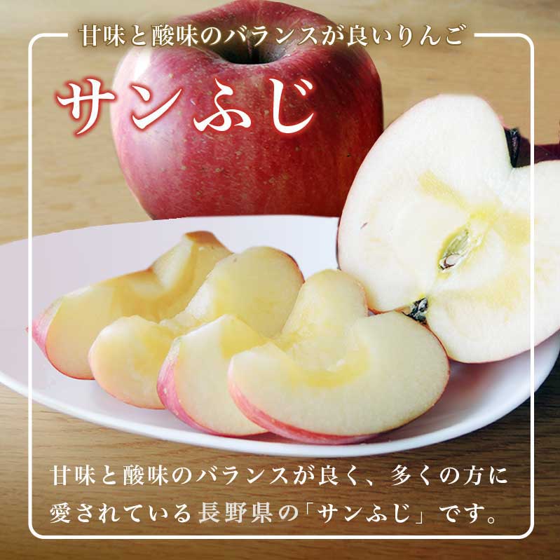 信州の「サンふじ」は花が咲いてから収穫までの時間が長く、太陽の恵みをたっぷりと受けているので蜜が入りやすく、ジューシーな甘さの「サンふじ」が育ちます。
