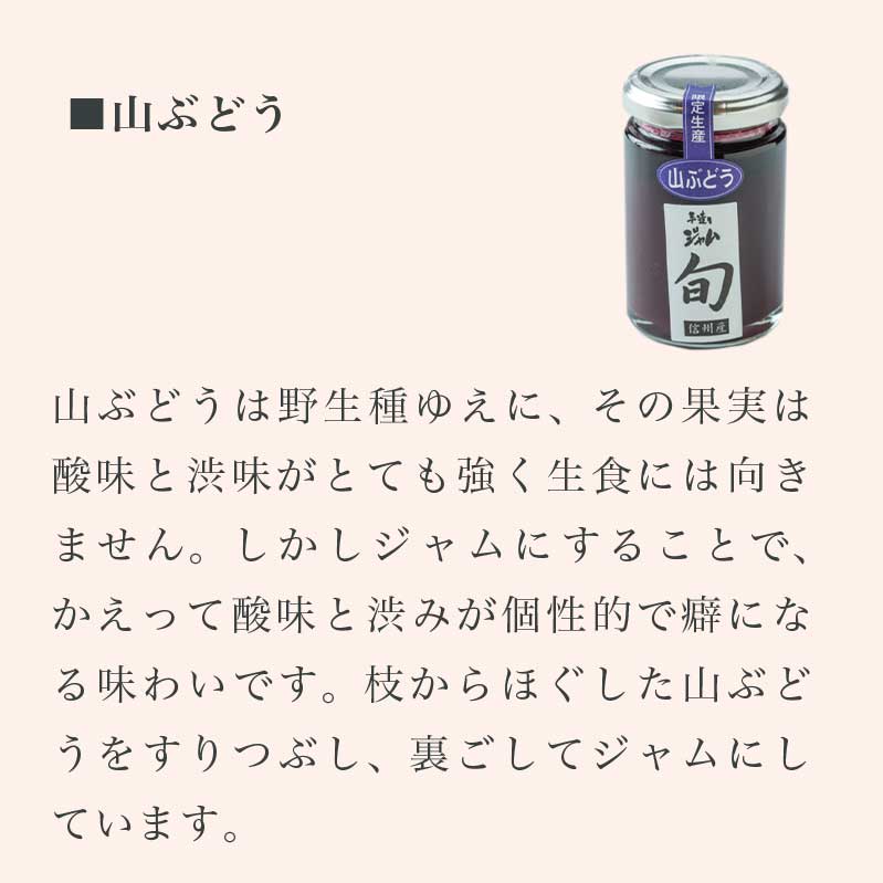 県の北部に位置する北信地域や小布施町で栽培される、四季折々の果物を瓶の中に閉じ込めてジャムにしました。