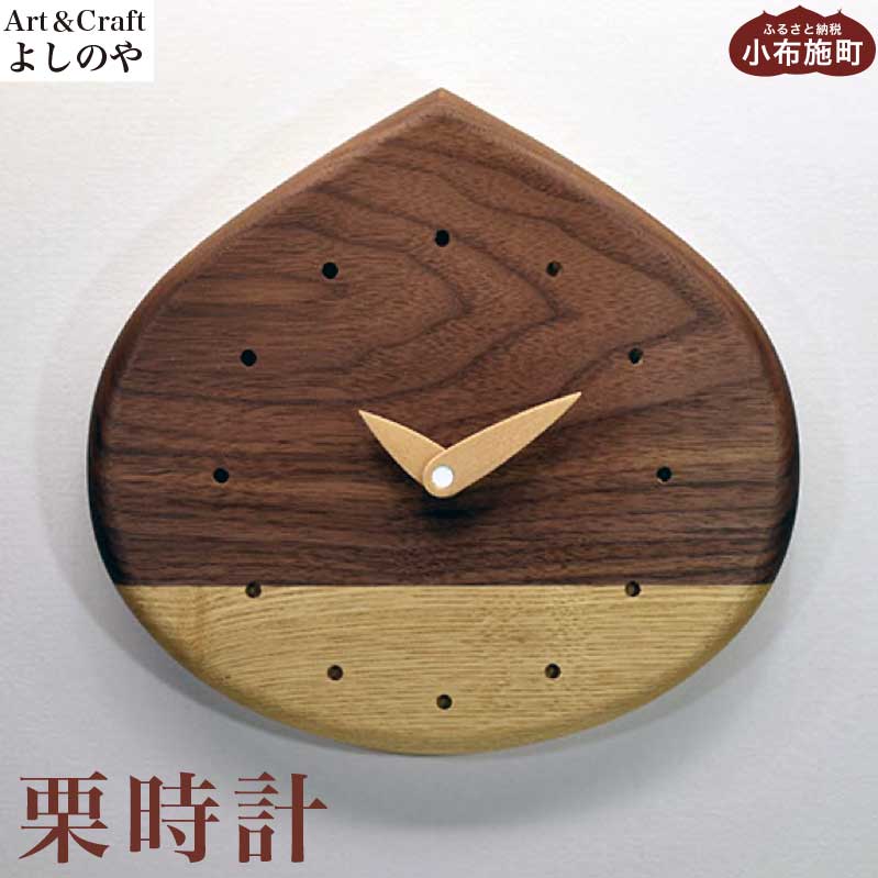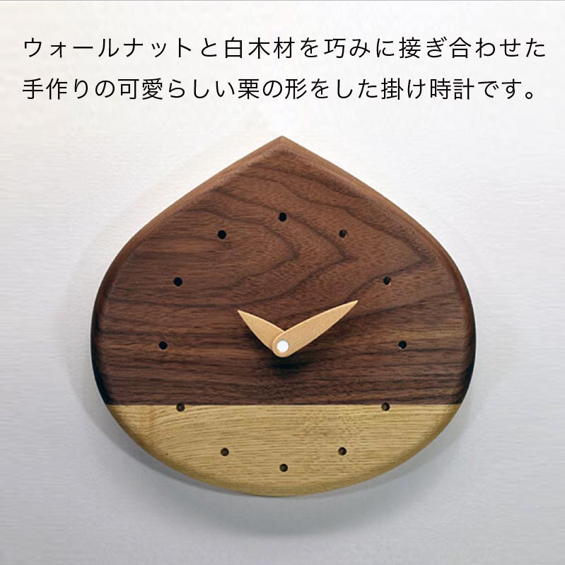 栗の産地小布施にピッタリな栗時計。ウォールナットと白木材を接ぎ一つ一つ手作りしています。そこにあるだけでお部屋の雰囲気を和ませてくれるお品です。針も木製の切り出し手造りです。