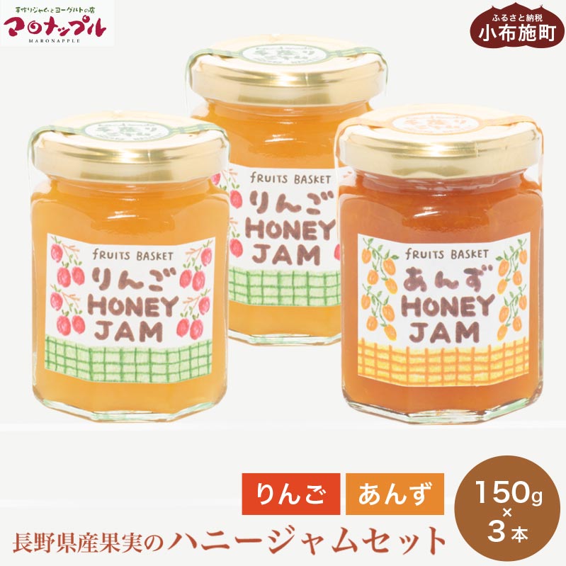[保存料・化学調味料不使用] 長野県産果実のハニージャム2種セット 150g×3本 (りんご、あんず) [手作りジャムの店 マロナップル]