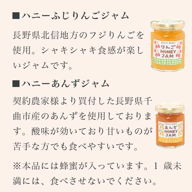 ・ハニーふじりんごジャム150g×2本 ・ハニーあんずジャム150g×1本