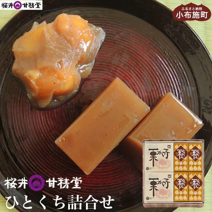 桜井甘精堂は信州小布施で文化5年(1808年)より栗菓子を中心に菓子の製造・販売をしています。ひとくち詰合せ1号は桜井甘精堂の定番商品、ひとくち栗ようかん、ひとくち栗かの子の詰合せです。文政2年(1819年)創製の栗ようかんと明治25年(1892年)創製の栗かの子、どちらも菓子の食感と栗の風味がきちんと表現できるように、細心の注意を払いながら丁寧につくり上げています。